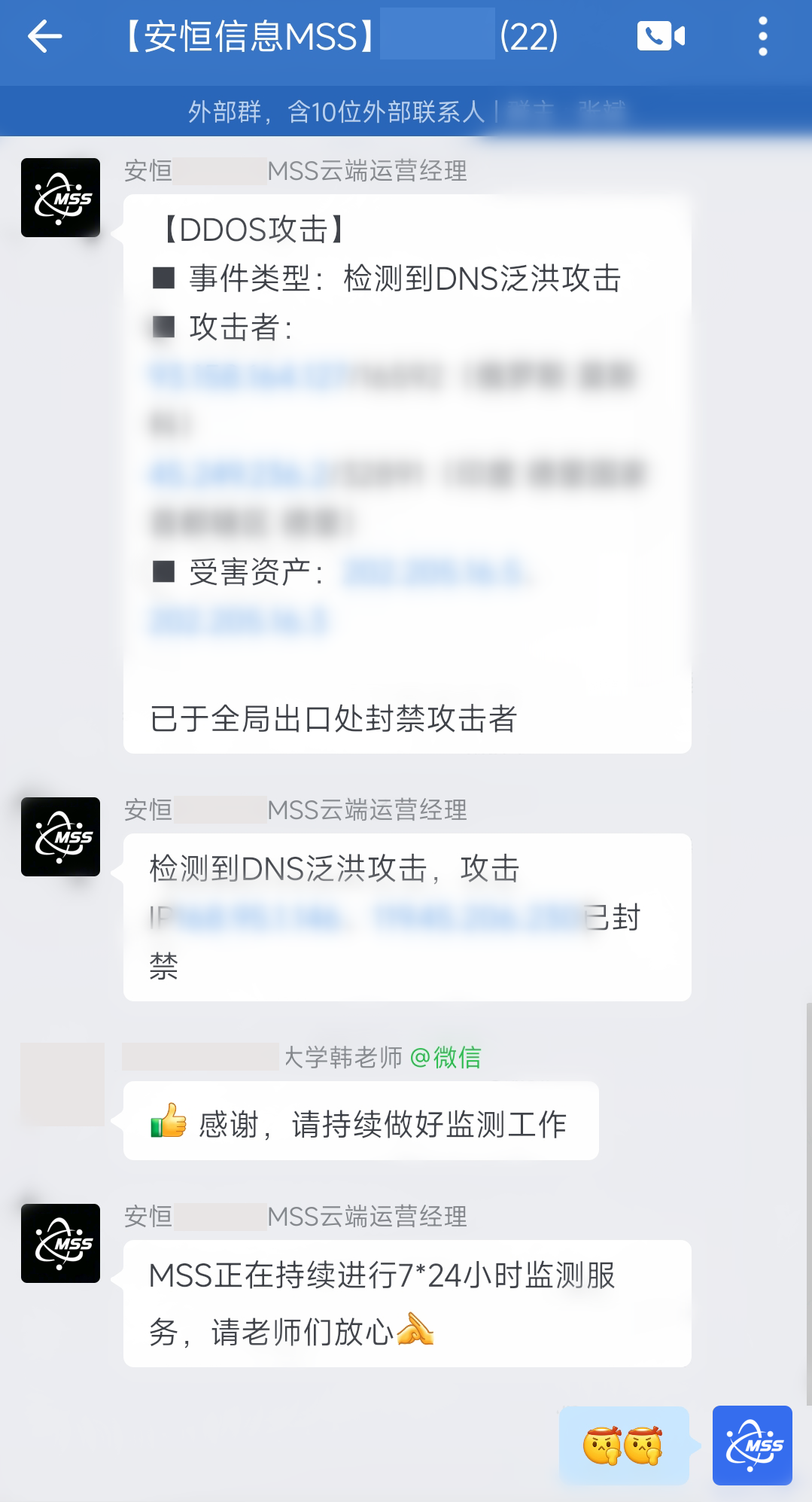 近日,安恒信息MSS安全托管运营团队监测到国内多家高校DNS服务器遭受攻击。安恒信息MSS团队第一时间对攻击情况进行了通告,针对多个受害用户开展应急响应工作,并协助用户恢复网络。