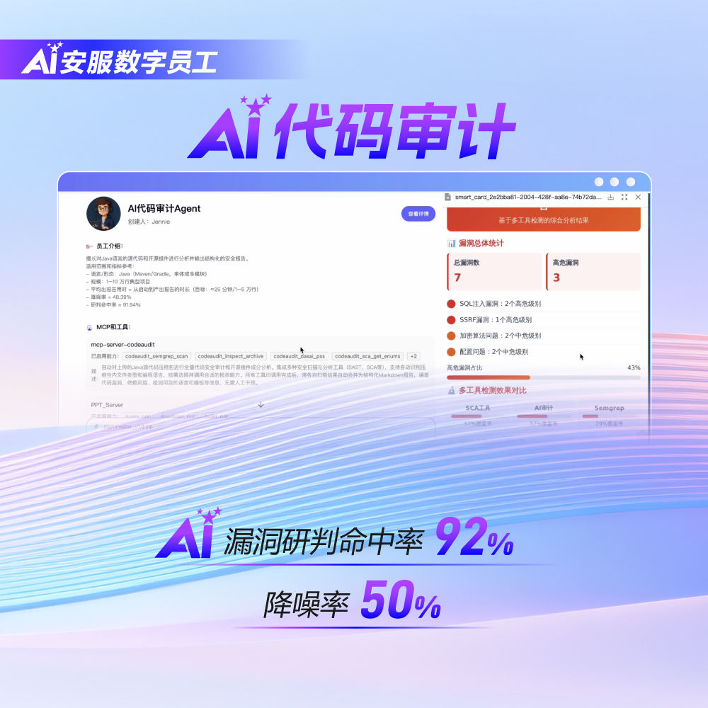 从静态分析、成分分析、AI研判、AI审计到智能修复,一站式自动化执行,输出关键漏洞报告。